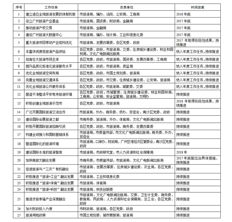 (十)加快推进国际旅游目的地建设,加大广州旅游宣传营销的财政投入,用于对外宣传推介、境外推广中心等国际旅游营销体系建设等。(责任单位:市旅游局、财政局)