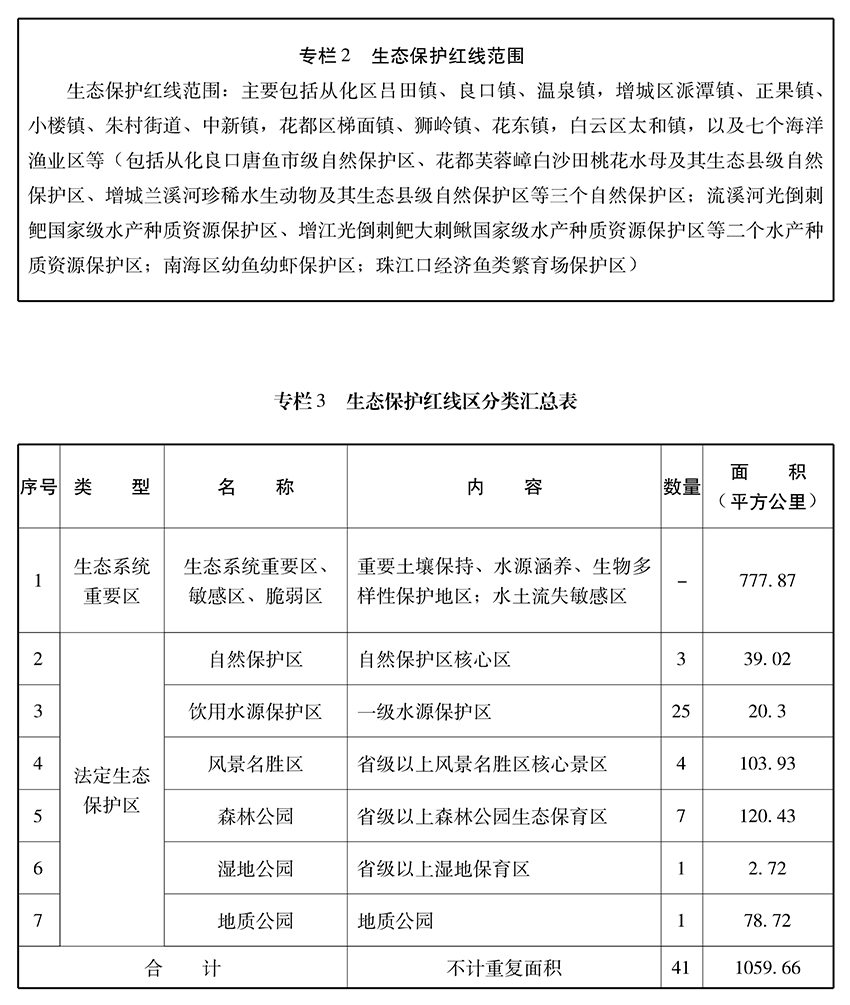 以自然资源禀赋和环境承载能力为基础,将饮用水源一级保护区、市级及以上自然保护区的核心区、省级及以上风景名胜区的核心景区、森林公园的生态保育区、湿地公园的湿地保育区、地质公园的一级保护区等法定生态保护区和水源涵养、土壤保持、生物多样性保护、水土流失等生态系统重要区域划入生态保护红线范围,总面积1059.66平方公里,约占全市地域面积的14.25%。实施严格的生态红线管控制度,红线内禁止城镇建设、工农业生产和矿产资源开发等改变区域生态系统现状的生产经营活动,市政公益性基础设施建设等需符合相应法律法规要求。其中,法定生态保护区内禁止新建、改建、扩建与所属法定保护区域保护要求不一致的建设项目和生产活动,已经建成的无关建设项目应拆除或者关闭退出。生态系统重要区禁止新建、扩建工业项目,禁止新建露天采矿等生态破坏严重的项目,禁止新建规模化畜禽养殖场。逐步清理区域内现有污染源,引导人口逐步转移,现有工业企业、矿山开发、畜禽养殖场等要逐步退出,严格控制污染物排放,功能受损区域实施生态恢复。