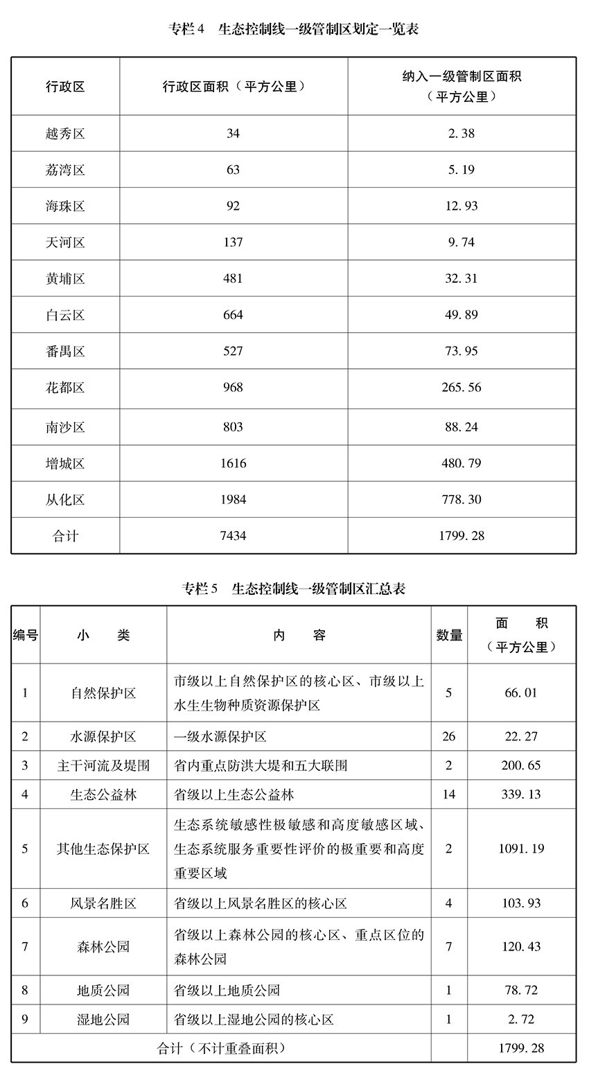 出台《广州市生态控制线管理规定》,严格生态控制线内土地开发、利用和管理。调整按行政区和用地基数分配用地指标的做法,将开发强度指标分解到各区,作为约束性指标,控制建设用地总量。对耕地、林地、河流、湖泊、湿地、海域、滩涂等自然生态空间实行用途管制,严格控制转为建设用地。加强自然保护区、风景名胜区、文化遗产、森林公园等重要生态系统、生物物种及遗传资源实施有效保护。