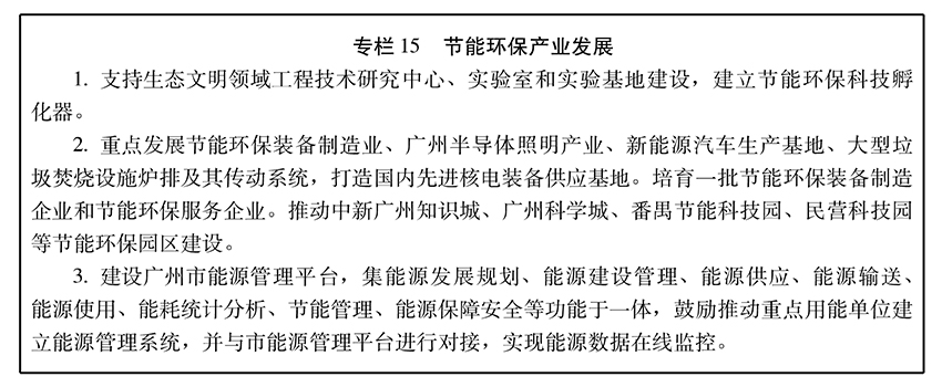 “十二五”以来,广州积极实施“节能、蓝天、绿地、碧水、清洁、低碳”行动计划,严格限制高耗能、高排放产业发展,全面推行企业清洁生产,加快淘汰落后产能,严格控制煤炭消费总量增长,积极推进大气污染防治,加强水环境综合治理,组织实施森林进城、森林围城,大力推广绿色建筑,加快发展低碳交通,推进城乡生活垃圾分类和处理,先后获得“全国文明城市”、“国家森林城市”、“国家低碳试点城市”、“全国生活垃圾分类示范城市”、“国家水生态文明示范城市”、“联合国改善人居环境最佳范例(迪拜)奖”等众多荣誉称号。
