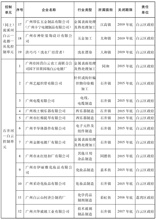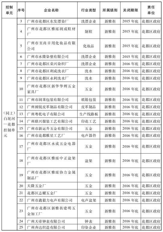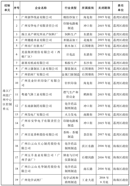 4.优化产业空间布局。重点发展《广州制造2025战略规划》所确定的十大重点领域的产业体系,着力打造先进制造业基地,制定淘汰企业名录及年度淘汰计划,对不符合功能区划的企业坚决依法限期关停、搬迁。(市发展改革委、工业和信息化委牵头,市国土规划委、环保局、住房城乡建设委、水务局参与,各区政府落实)