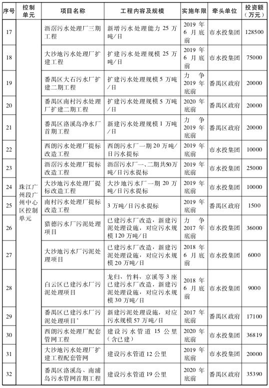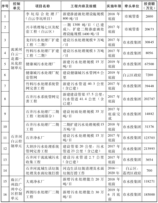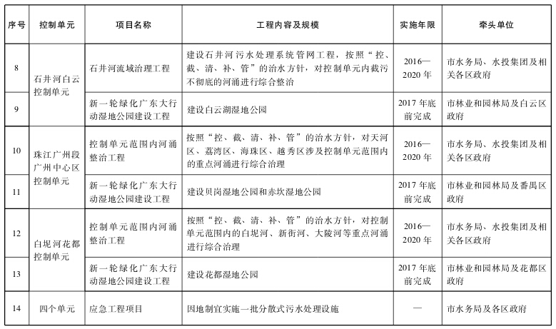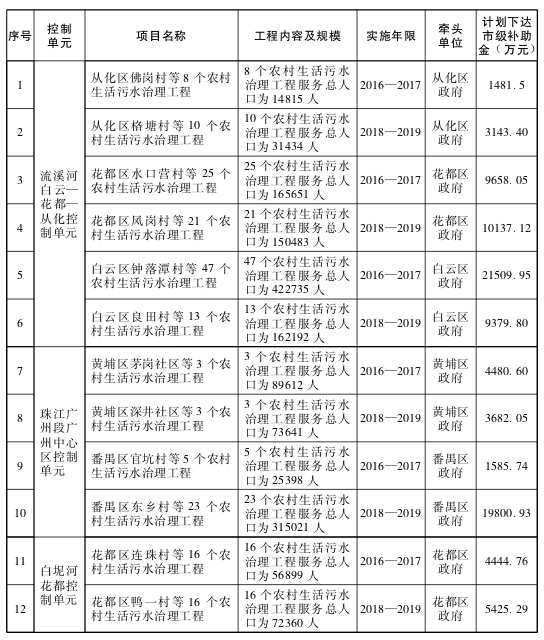 注:本表工程主要参考了《关于进一步加强我市农村生活污水治理工作的实施方案》(穗水排水〔2013〕37号),含已建工程。具体工程量以各牵头单位或实施单位的相关规划、方案、行动计划及项目概算批复为准。