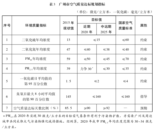 分阶段目标年分别为2020年和2025年。2020年为近期规划年,要求多污染物协同减排成效显著,空气质量实现全面达标,空气质量达标天数比例达到90%以上。2025年为中远期规划年,要求空气质量全面稳定达标,并在此基础上持续改善,臭氧污染得到有效控制,空气质量达标天数比例达到92%以上。