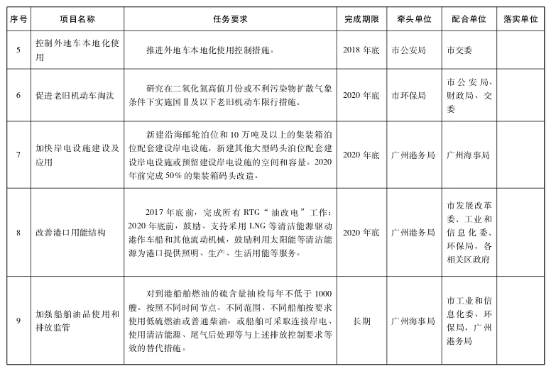 开展近岸海域空气质量监测,2017年底前在南沙港等主要港区建立空气质量监测站点。