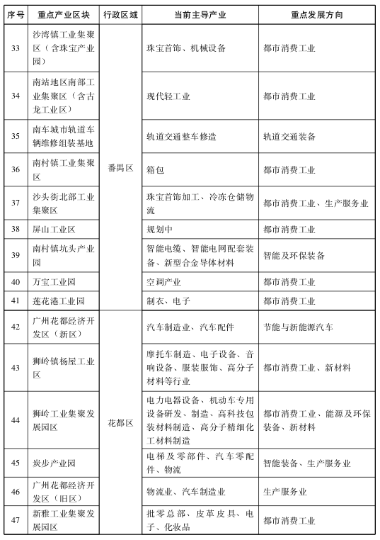 以中心城区为核心,黄埔区、花都区、南沙区、增城区等区产业集群为依托,积极推进建设涵盖研发设计、电子商务、现代物流、供应链管理、金融服务、科技信息、检验检测等一系列要素的生产性服务业功能区发展体系。中心城区重点建设琶洲互联网创新集聚区(研发设计总部)、广一国际电子商务产业园(电子商务)、平云广场(检验检测)、3D打印产业园(研发设计)、荔湾“互联网+”小镇(电子商务)、白鹅潭产业金融服务创新区(金融服务)等功能区。黄埔区依托“互联网+”小镇资源,重点发展状元谷(现代物流)、荔联宝盛电商园(电子商务)、鱼珠智谷(科技信息)等功能区。南沙区依托自贸区政策优势,以天运国际物流中心(供应链管理)、嘉诚国际港(现代物流)为载体,打造服务于本土制造业的综合跨境物流与供应链服务链条。增城区依托新塘牛仔产业集群等,重点建设广州中小微企业金融服务区(金融保险)、低碳总部园(研发设计总部)等。花都区依托狮岭皮革皮具、电子音响两大产业集群,以皮都皮具箱包博物馆、狮岭皮具文化广场、炭步飞达工业园等为载体,打造皮具箱包创意设计基地(创意设计)、云音响研发设计产业基地(研发设计)。