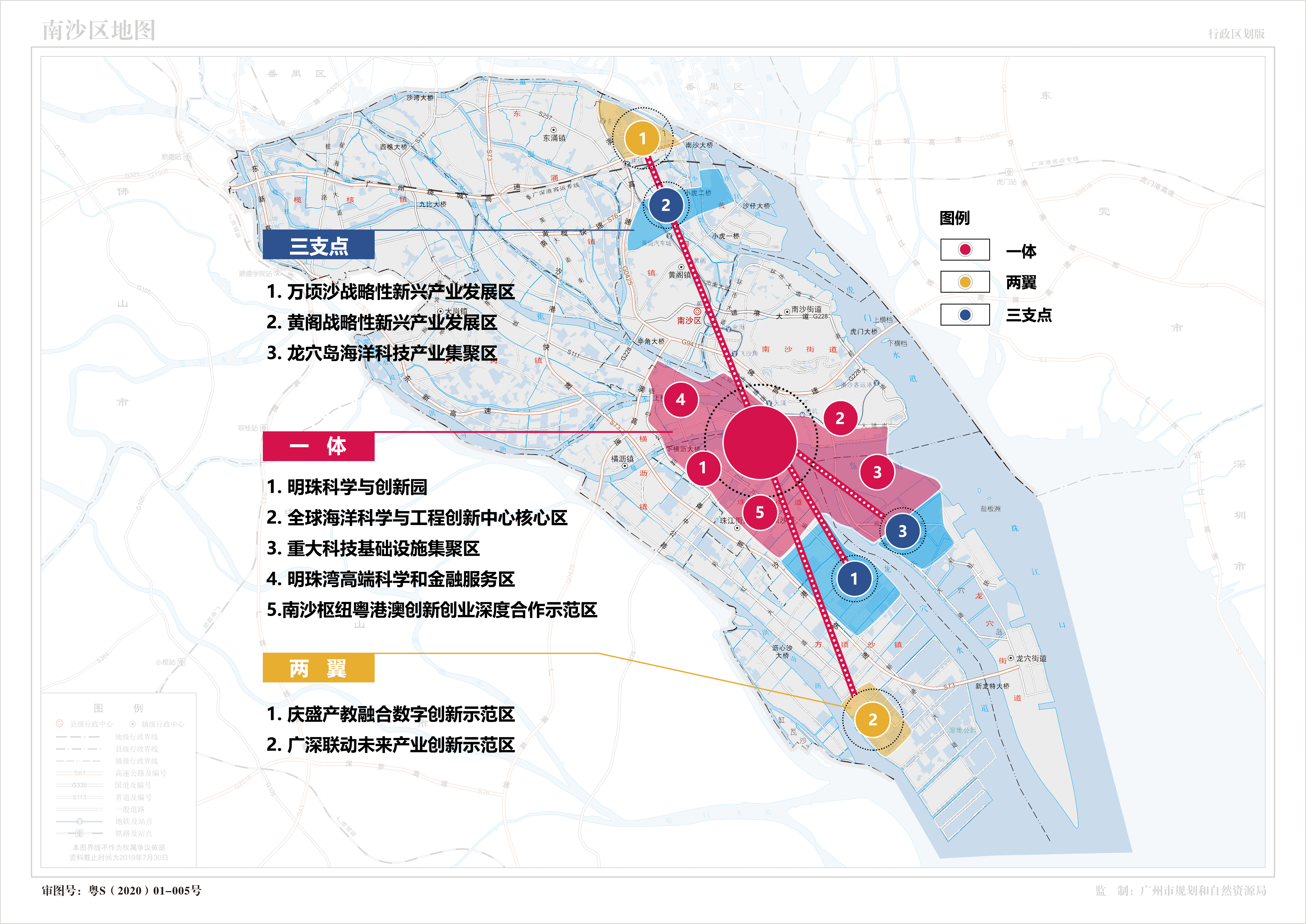 南沙科学城“一体两翼三支点”空间布局示意图