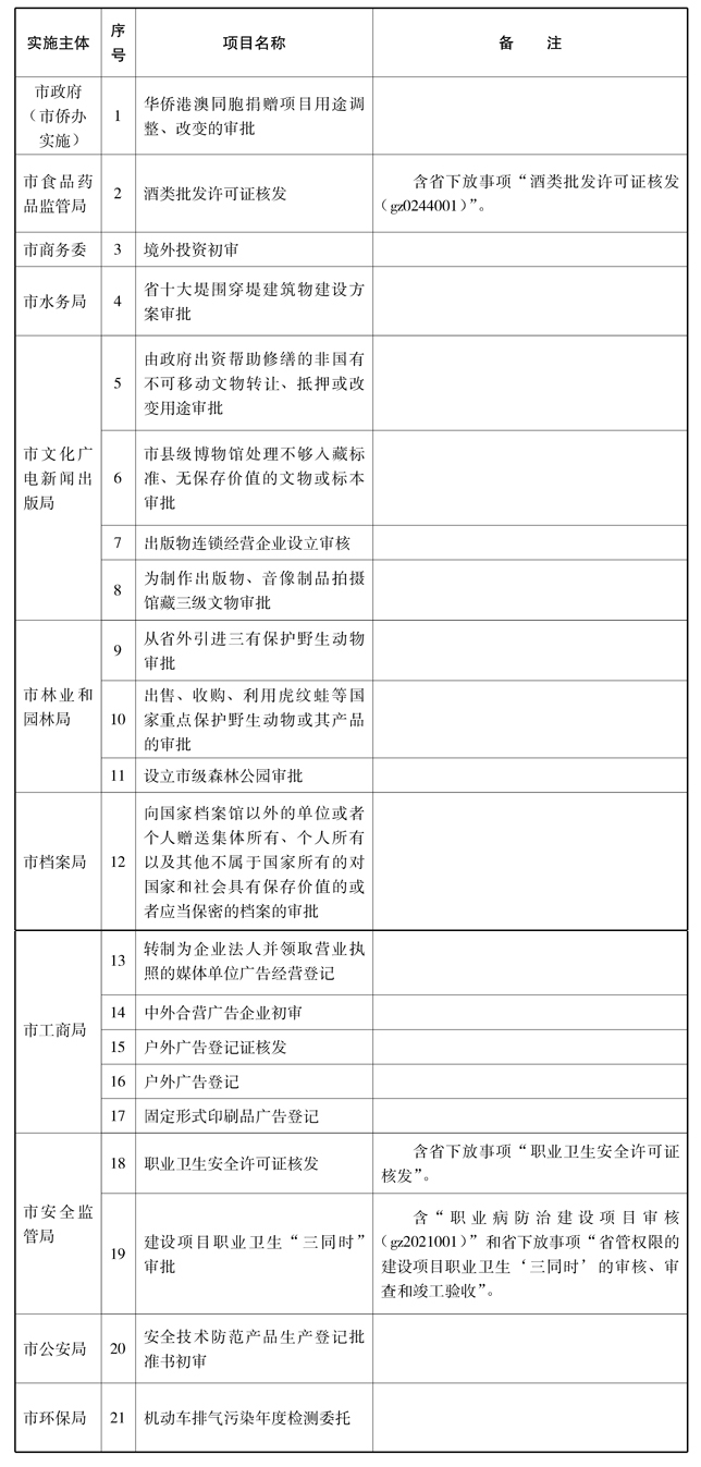 广州市行政许可、备案事项目录