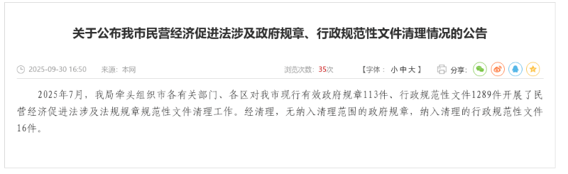 “清理结果”直达广州市司法局新开设的“清理结果”栏目,该栏目专门用于集中公布市政府规章和全市行政规范性文件的最新清理结果,近期公布了《关于公布我市民营经济促进法涉及政府规章、行政规范性文件清理情况的公告》,为市场主体提供了稳定、清晰、可预期的制度环境,有力维护了法制统一。