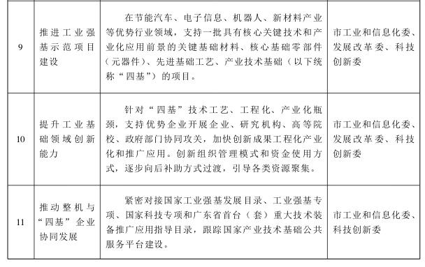 紧密对接国家工业强基发展目录、工业强基专项、国家科技专项和广东省首台(套)重大技术装备推广应用指导目录,跟踪国家产业技术基础公共服务平台建设,支持整机、系统和基础企业合作研发和协同攻关,推动整机和系统采用自主产品和技术。推进工业基础领域信息技术集成应用,加快技术创新成果转化,提高整机装备水平和产品质量性能。