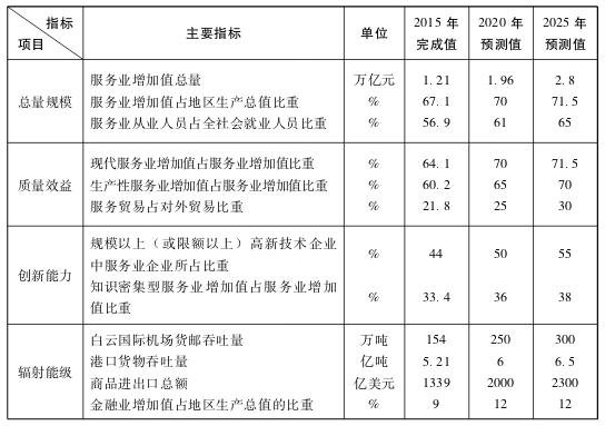广州服务经济预期性发展指标