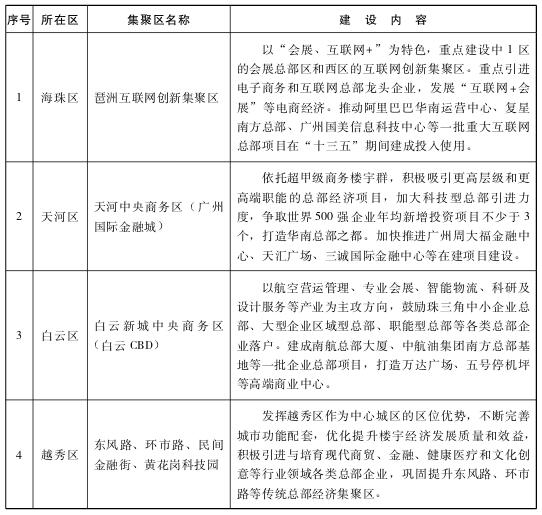 (四)持续推进电子商务集聚区建设。按照集聚集约集群发展思路,鼓励各区发挥特色优势,打造一批电子商务集聚区,推进广州(花地河)电子商务集聚区建设千亿级电子商务集聚发展区和国家电子商务示范基地,推进黄埔国家电子商务示范基地建设珠三角地区有较大影响力的国际电子商务园区和华南电子商务的运营中心、孵化基地。