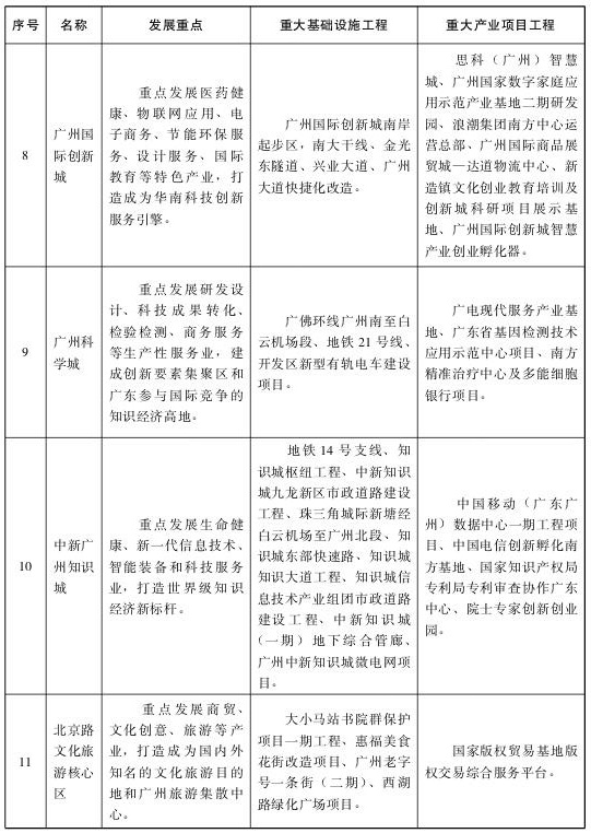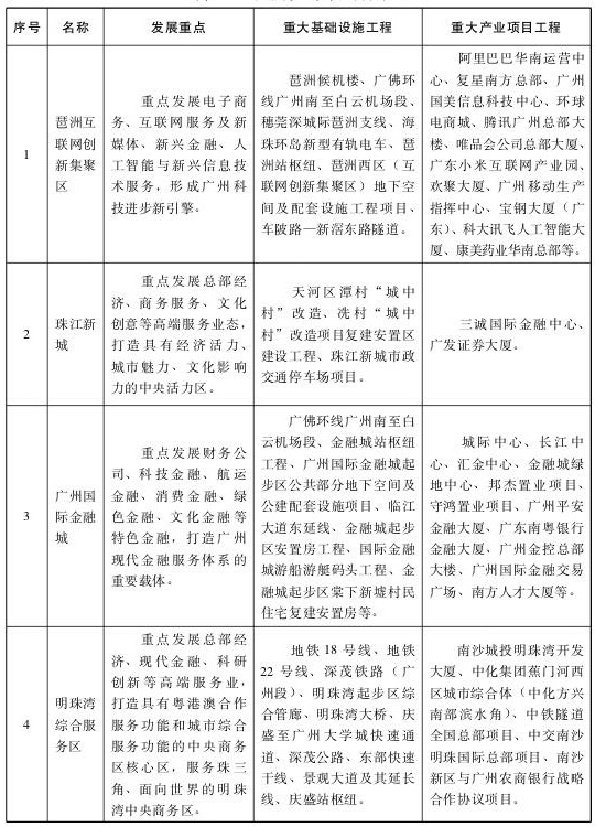 黄金三角区:重点推进琶洲互联网创新集聚区、国际金融城、珠江新城融合发展,构成中心城区集聚高端要素的“黄金三角区”。