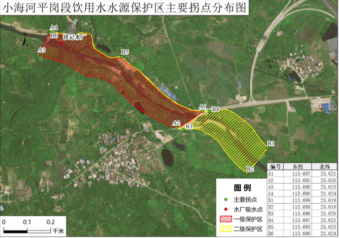 附图2 小海河平岗段饮用水水源保护区主要拐点分布图