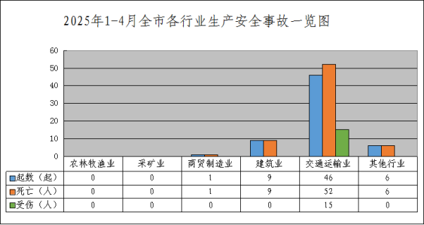 据统计,1-4月,全市发生生产安全事故62起、死亡68人、受伤15人,同比减少17起、减少死亡5人、减少受伤39人。