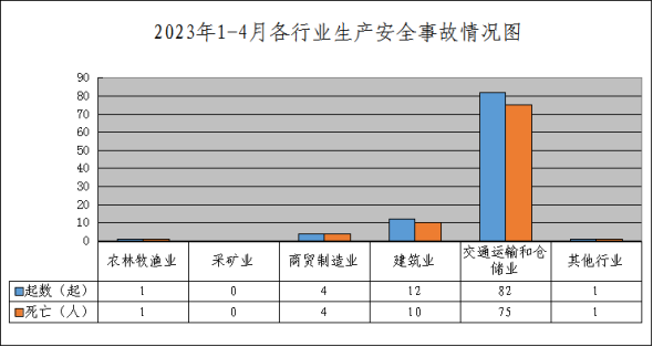 据统计,1-4月,全市共发生各类生产安全事故(以下简称“事故”)100起、死亡91人、受伤32人,同比分别下降11.5%、3.2%、31.9%。未发生较大及以上事故。