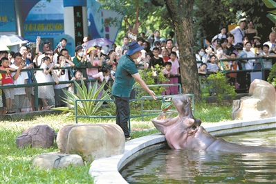 上半年,广州市民文化消费需求释放,文化娱乐休闲服务行业增长迅猛。图为广州动物园暑期迎来众多市民游客参观游览。