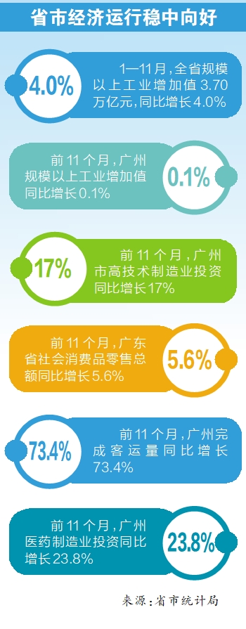 广州市统计局表示,总的来看,1-11月,广州经济运行积极因素不断累积。但经济恢复面临的内外压力仍然较大,生产持续向好支撑不足,需求加快复苏基础不稳。下阶段,要紧紧锚定高质量发展首要任务,认真落实中央经济工作会议精神,坚持稳中求进、以进促稳、先立后破,进一步稳生产调结构、优供给扩需求、抓项目促投资、强基础育主体,全力以赴推动经济加快回升向好。