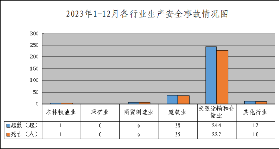 1-12月,全市共发生各类事故301起、死亡279人、受伤110人,同比分别下降14.0%、6.4%、16.0%,未发生较大及以上事故。