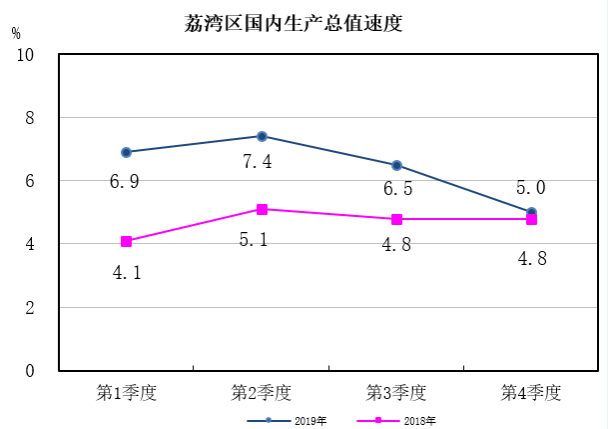2019年,全区实现地区生产总值1104.49亿元,同比增长5.0%,经济运行总体平稳,保持在合理区间。