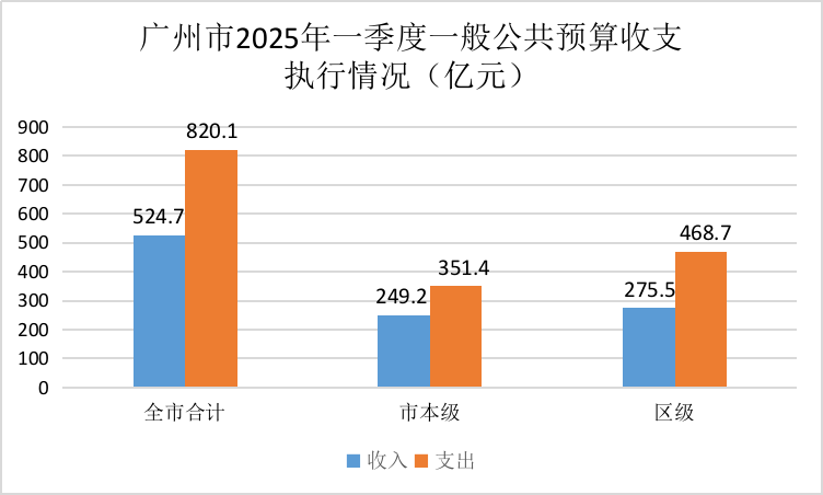 一季度,全市一般公共预算收入524.7亿元,同比增长3.7%。其中:市本级一般公共预算收入249.2亿元,同比增长5%;区级一般公共预算收入275.5亿元,同比增长2.6%。