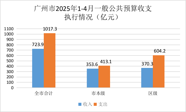 1-4月,全市一般公共预算收入723.9亿元,同比增长3.4%。其中:市本级一般公共预算收入353.6亿元,同比增长3.5%;区级一般公共预算收入370.3亿元,同比增长3.2%。