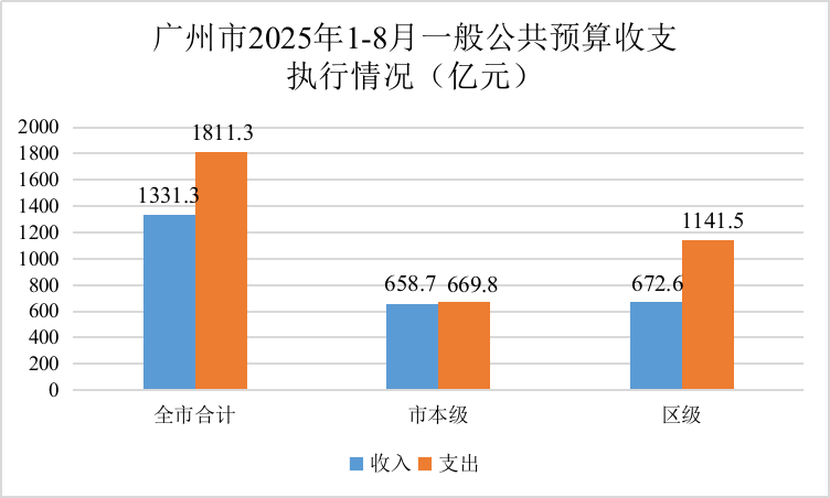 1-8月,全市一般公共预算收入1,331.3亿元,同比增长2.5%。其中:市本级一般公共预算收入658.7亿元,同比增长1.3%;区级一般公共预算收入672.6亿元,同比增长3.6%。