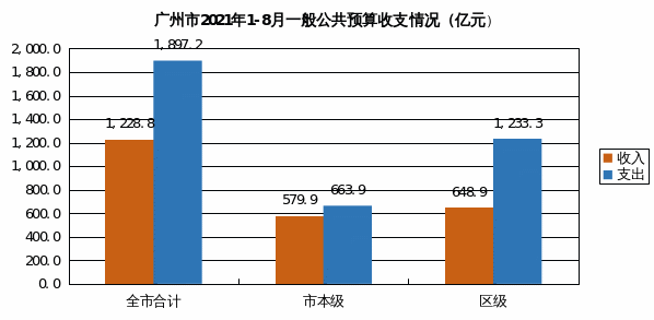 2021年1-8月,全市一般公共预算收入1,228.8亿元,同比增长12.2%。其中:市本级收入579.9亿元,同比增长9.2%;区级收入648.9亿元,同比增长15%。全市一般公共预算支出1,897.2亿元,同比增长6.3%。其中:市本级支出663.9亿元,同比下降0.6%;区级支出1,233.3亿元,同比增长10.4%。