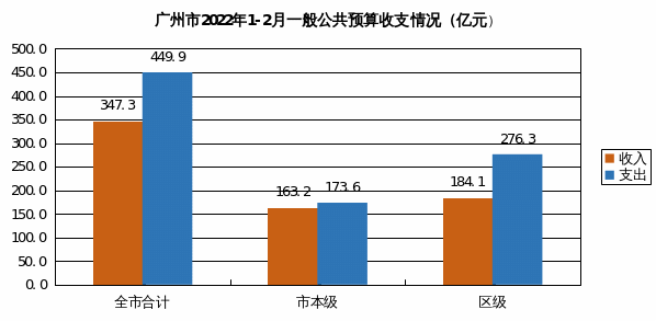 2022年1-2月份,全市一般公共预算收入347.3亿元,同比增长3.9%。其中:市本级收入163.2亿元,同比增长7.1%;区级收入184.1亿元,同比增长1.2%。全市一般公共预算支出449.9亿元,同比下降7.1%。其中:市本级支出173.6亿元,同比下降13.6%;区级支出276.3亿元,同比下降2.5%。