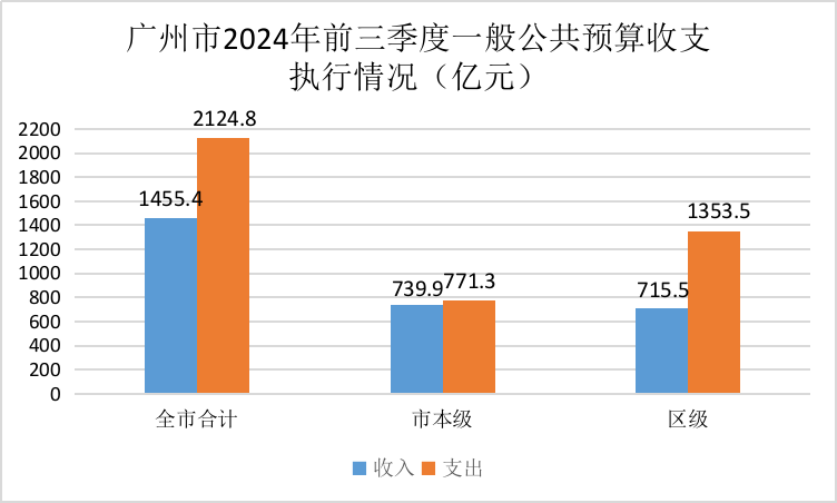 1-9月,全市一般公共预算收入1,455.4亿元,同比增长0.3%,其中:市本级一般公共预算收入739.9亿元,同比增长2.7%;区级一般公共预算收入715.5亿元,同比下降2%。