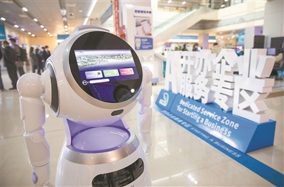 广州南沙政务服务中心办事大厅的政务服务机器人“小智”