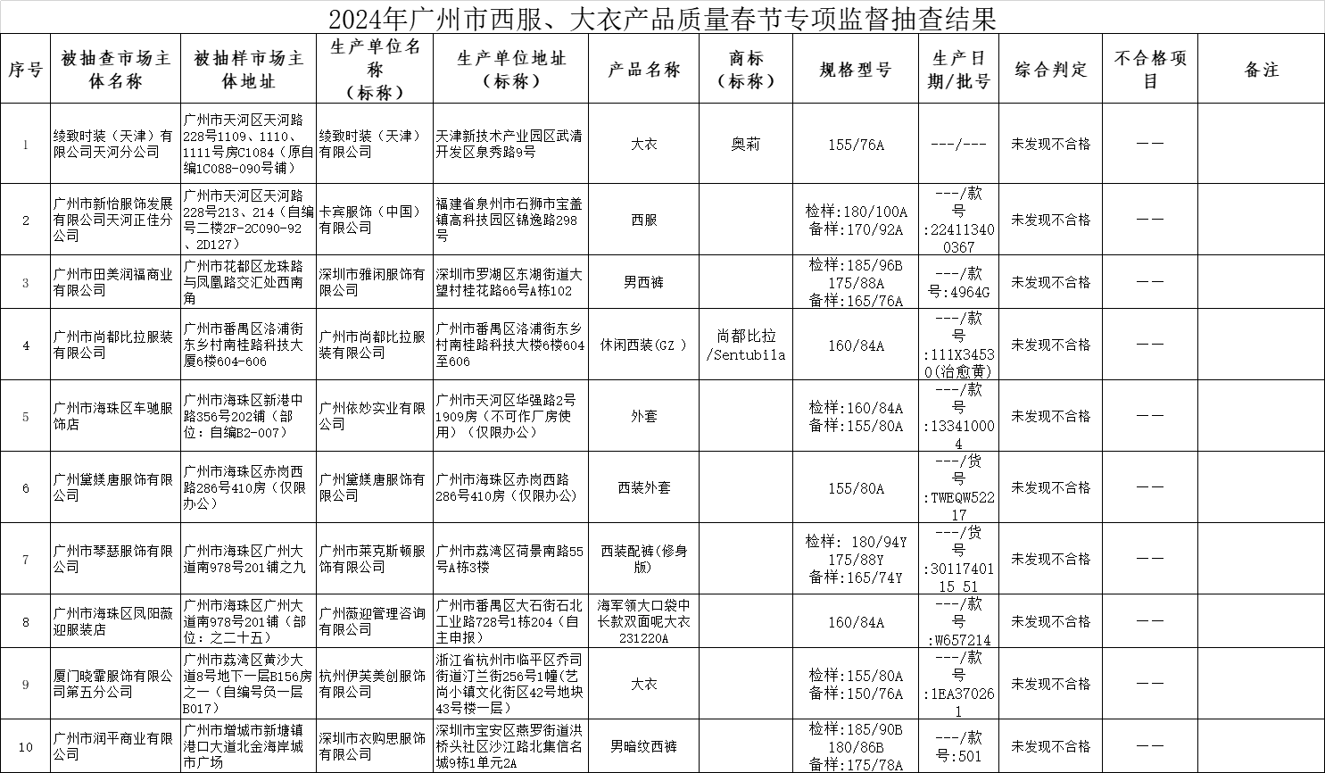 附件:2024年广州市西服、大衣产品质量春节专项监督抽查结果
