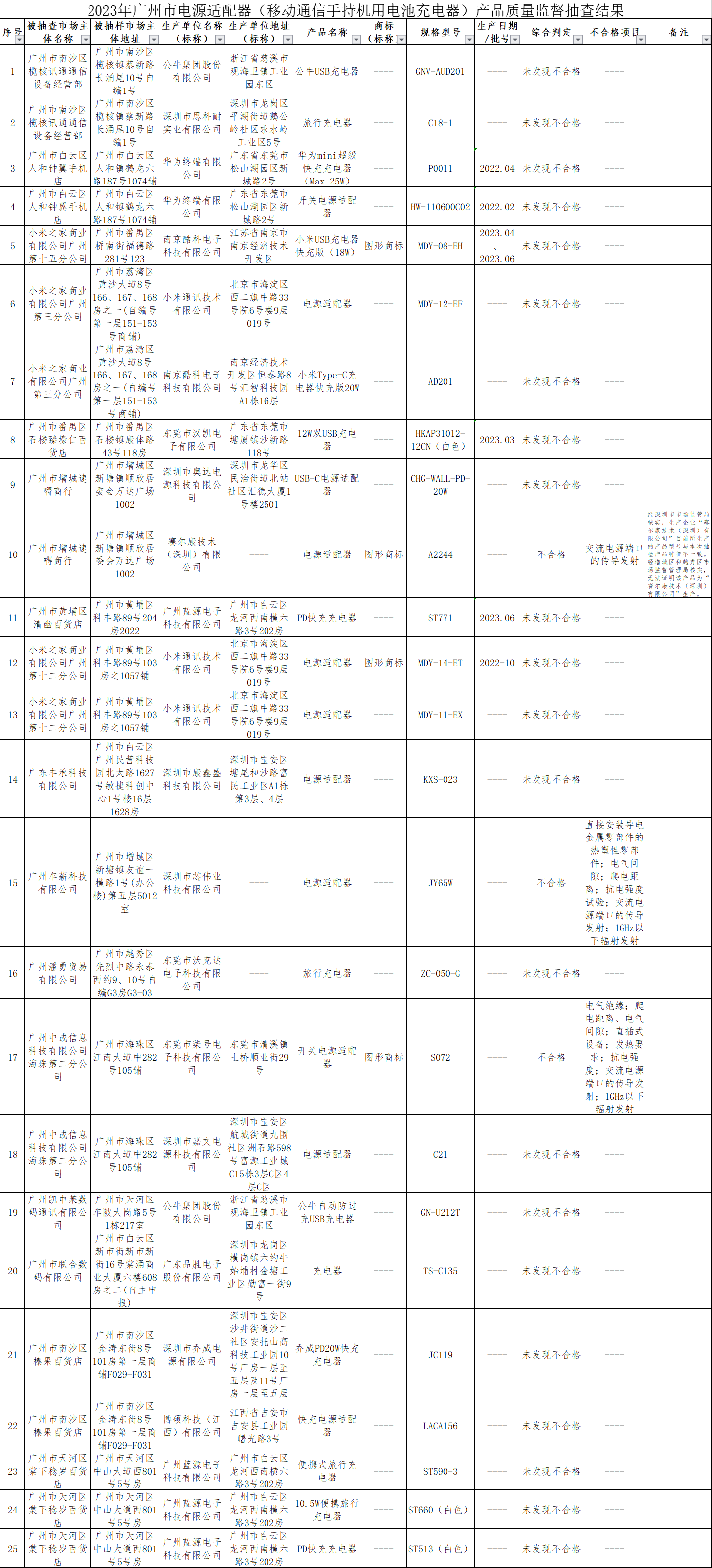 附件:2023年广州市电源适配器(移动通信手持机用电池充电器)产品质量监督抽查结果.png