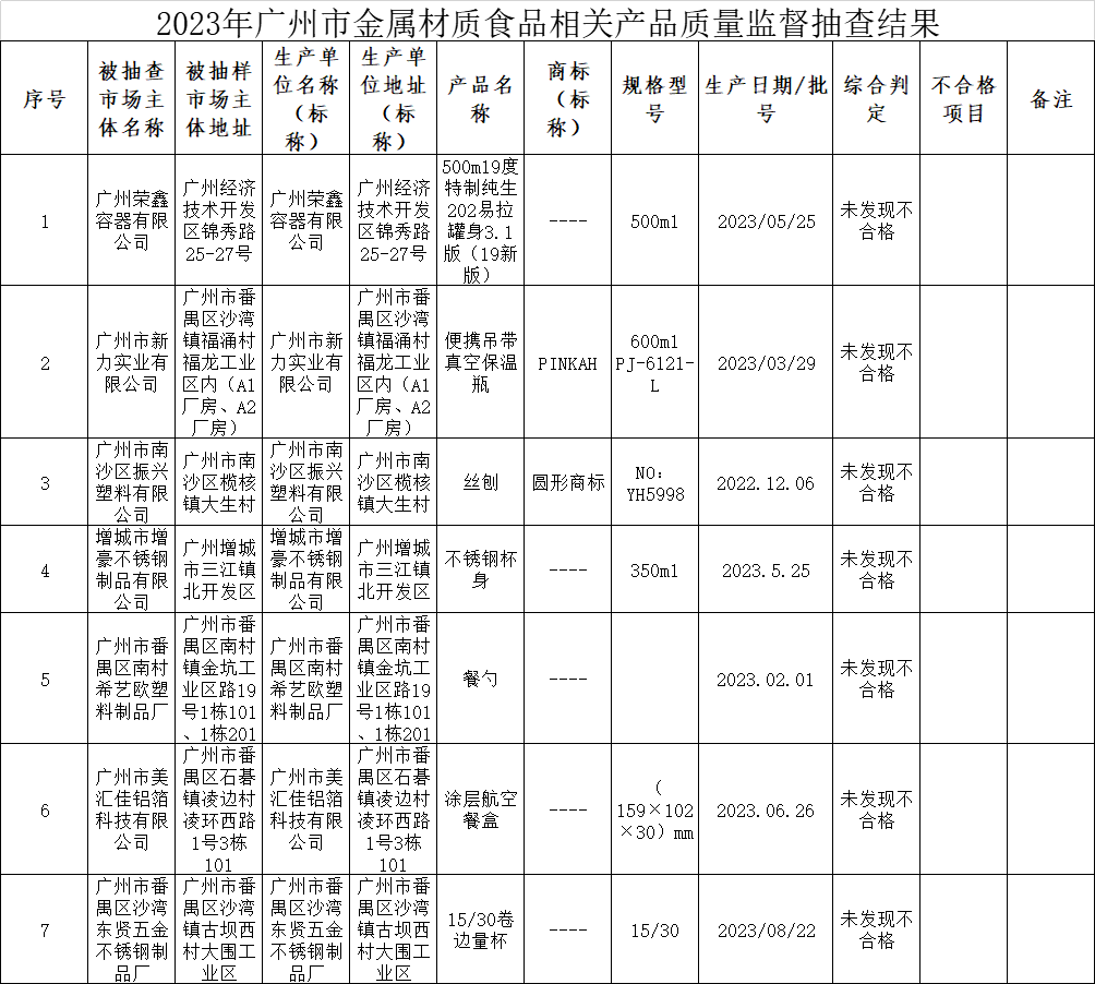 附件:2023年广州市金属材质食品相关产品质量监督抽查结果.png