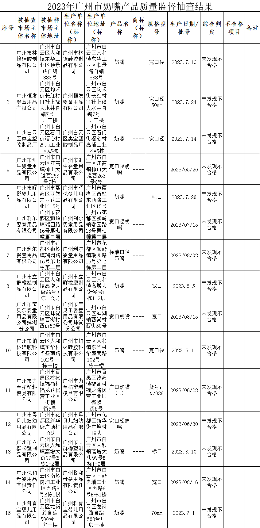 附件:2023年广州市奶嘴产品质量监督抽查结果.png