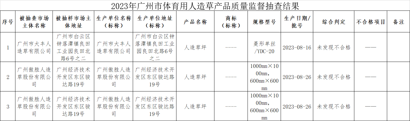 附件:2023年广州市体育用人造草产品质量监督抽查结果.png