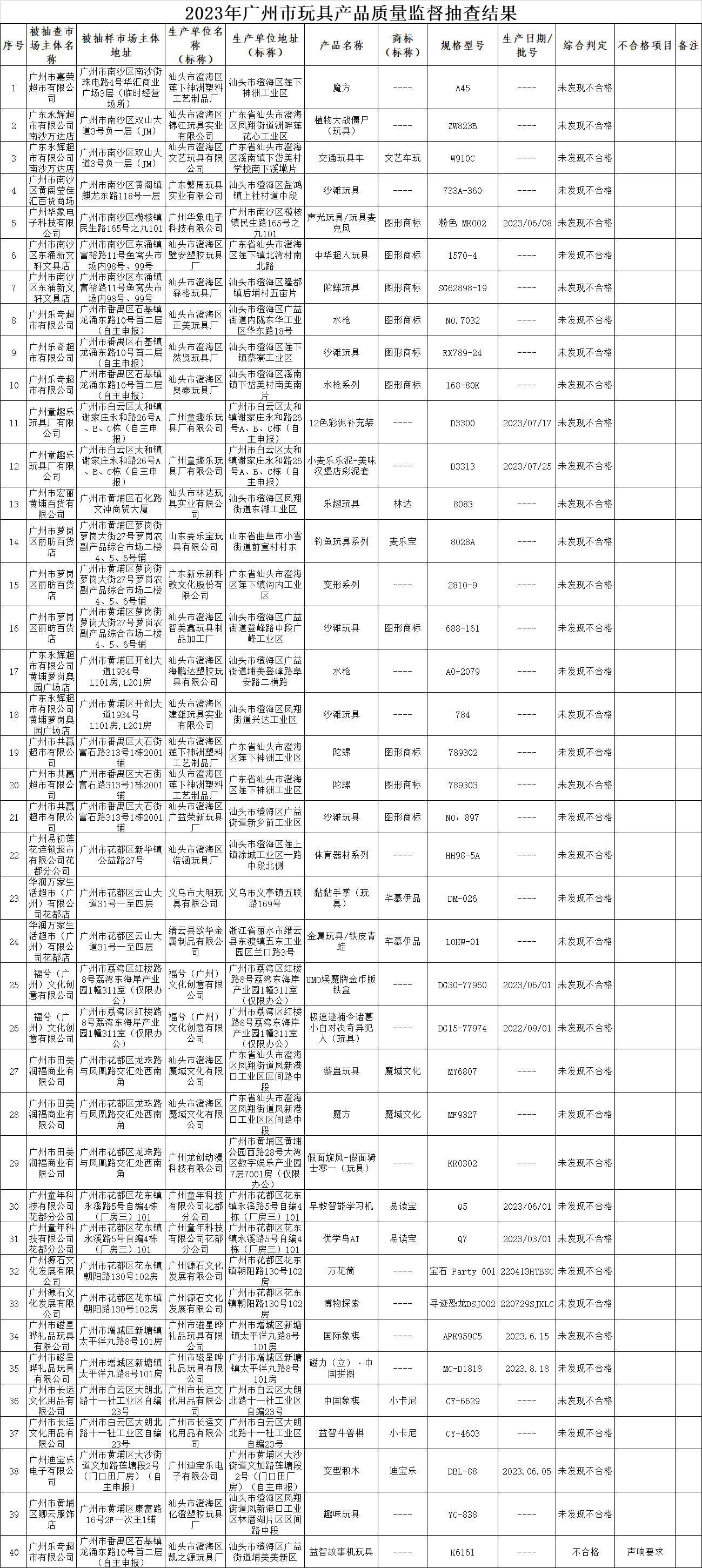 2023年第3季度,广州市市场监督管理局对玩具产品质量进行了监督抽查,共抽查了40批次产品,经检验,有1批次产品不符合标准要求。