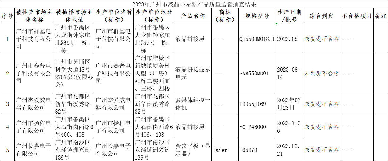 2023年第三季度,广州市市场监督管理局对液晶显示器产品质量进行了监督抽查,共抽查了5批次样品,经检验,全部产品符合标准要求。