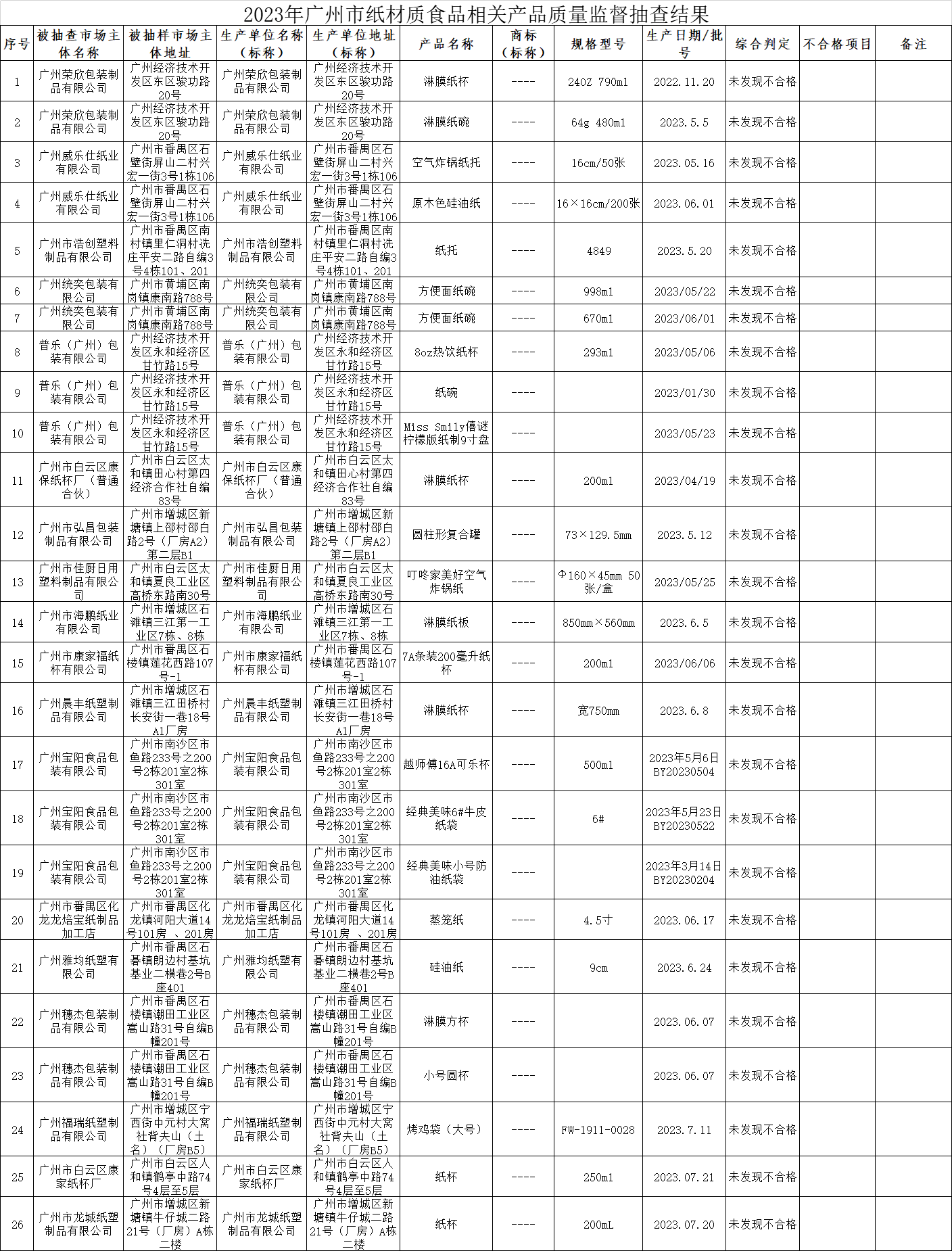 附件:2023年广州市纸材质食品相关产品质量监督抽查结果.png