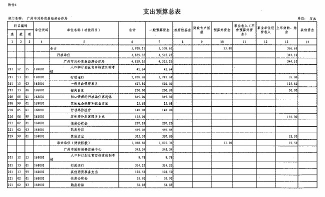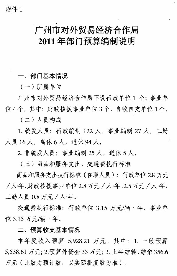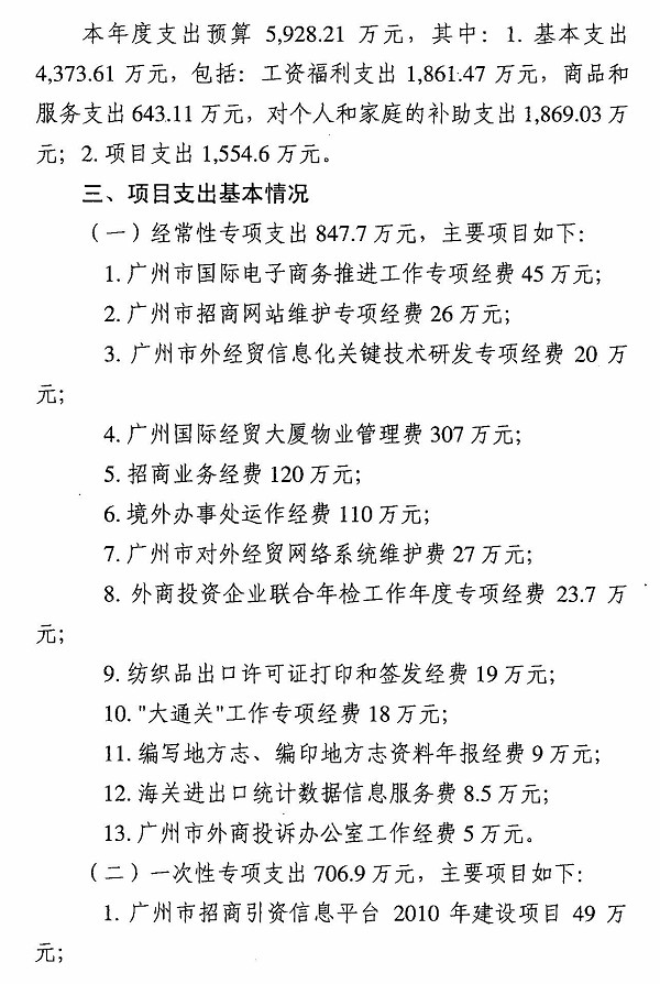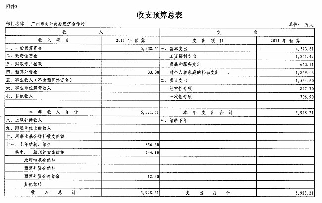 广州市外经贸局2011年部门预算