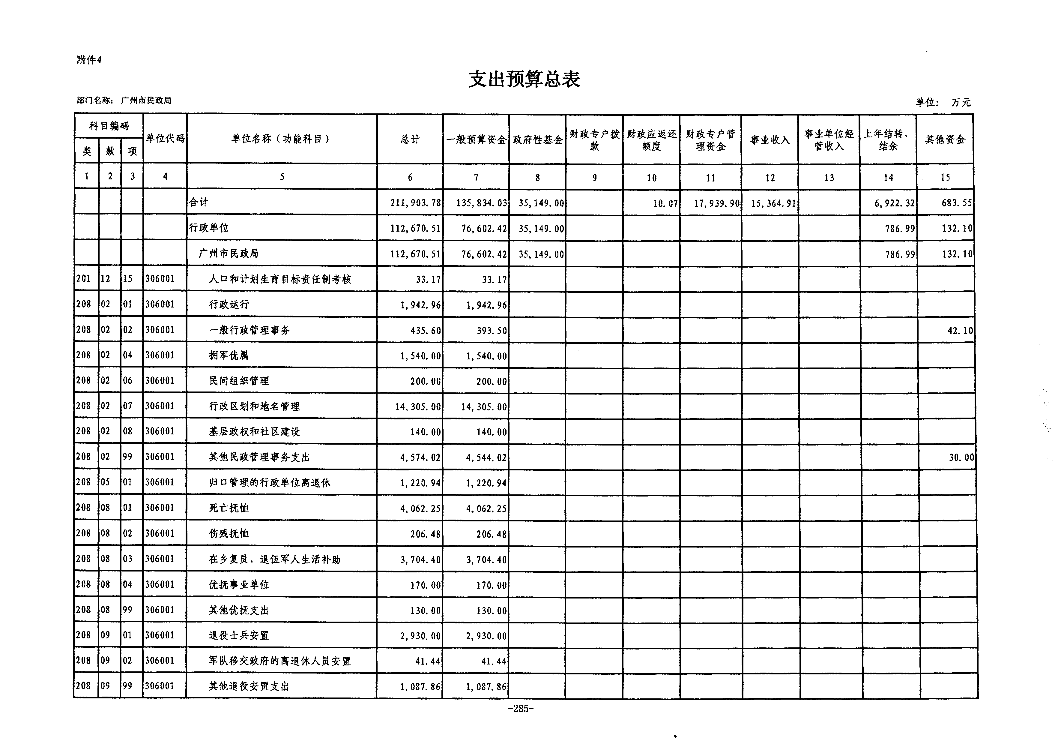 3.支出预算总表