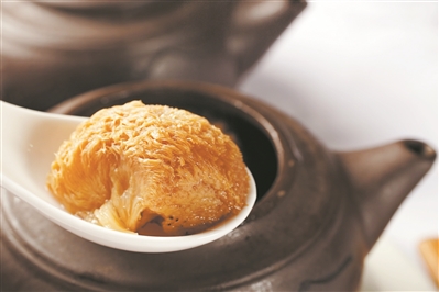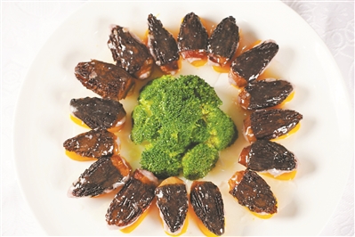 “这是贵州的羊肚菌,以往大家都用它来煲汤,我们把它做了改良和创新。将羊肚菌酿在芋头粉上,底层铺上南瓜放入锅中一起蒸,尽管是一道素菜,味道却不输大鱼大肉。”燕岭大厦餐饮部行政总厨许卓民告诉记者,近期餐厅推出的多个新菜式,令不少食客流连忘返。