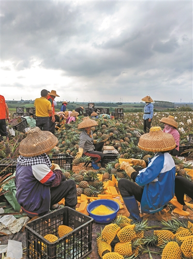 在广州消费帮扶的拉动下,雷州果农加班加点进行分拣装车,一批批凤梨走进广州千家万户