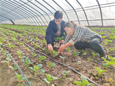 在疏附县广东叶菜现代化农业种植示范基地,当地村民学习种植广东叶菜