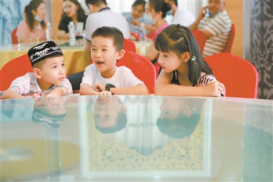 穗疏两地小朋友在结对认亲“民族团结手拉手”系列活动中开心交谈