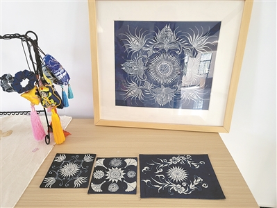 贵州纳雍县猪场乡湾子村农民专业合作社非遗工坊展厅展出的蜡染作品