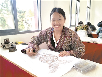 融合了贵州梯田、凤凰(百吉鸟)、小蛮腰、广州地铁意象的贵州蜡染刺绣,你见过吗?纳雍县猪场乡湾子村的农民专业合作社的非遗工坊展厅内,每一件栩栩如生的蜡染刺绣都是由湾子村的全职妈妈用蜂蜡一笔一笔手绘而成的。早年在苏州打工的王丽,有了孩子后便回到家乡当起了全职妈妈。“那时候没有收入,合作社成立之后,我们多了一份兼职,每月有两三千元的收入,工作时间也有弹性。”王丽告诉记者,她喜欢在麻布上天马行空地进行蜡染刺绣,希望随着手艺越来越精湛,日后能成长为一名非遗传承人。