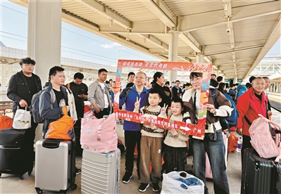 2月18日13时许,640名黔南籍务工人员怀抱着对新年更美好生活的憧憬,踏上D1859次列车,从都匀东站出发前往广州南站。经过近5个小时的车程,他们抵达广州南站,分别前往广州、深圳、佛山、东莞等地,开启新一年的圆梦之旅。