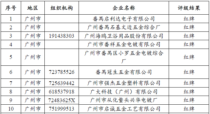 广东省重点污染源环境保护信用评价结果环保严管企业(广州市-红牌)