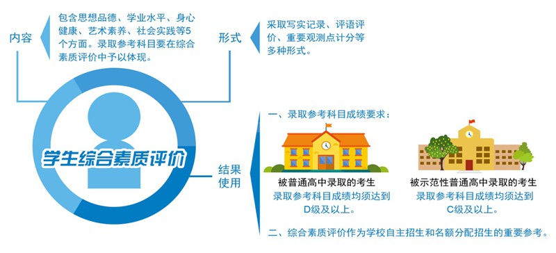 一是录取参考科目成绩采用等级呈现,克服唯分数顽瘴痼疾。二是物理、化学、生物、体育与健康均注重对学生实操能力和平时表现的考核。三是将学生综合素质评价作为名额分配、自主招生的重要参考。这些改革举措将引导学生发展兴趣特长、培养创新思维,促进学生全面而有个性地发展,避免人才选拔标准“一刀切”。
