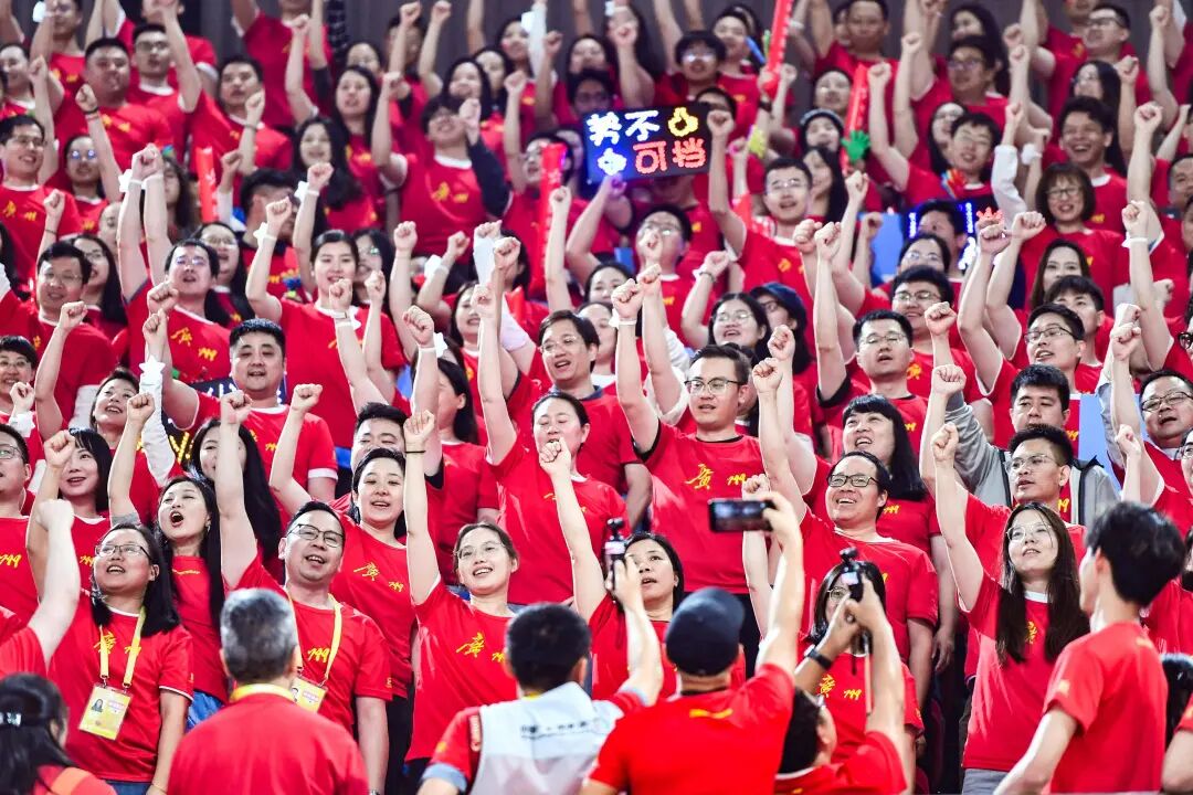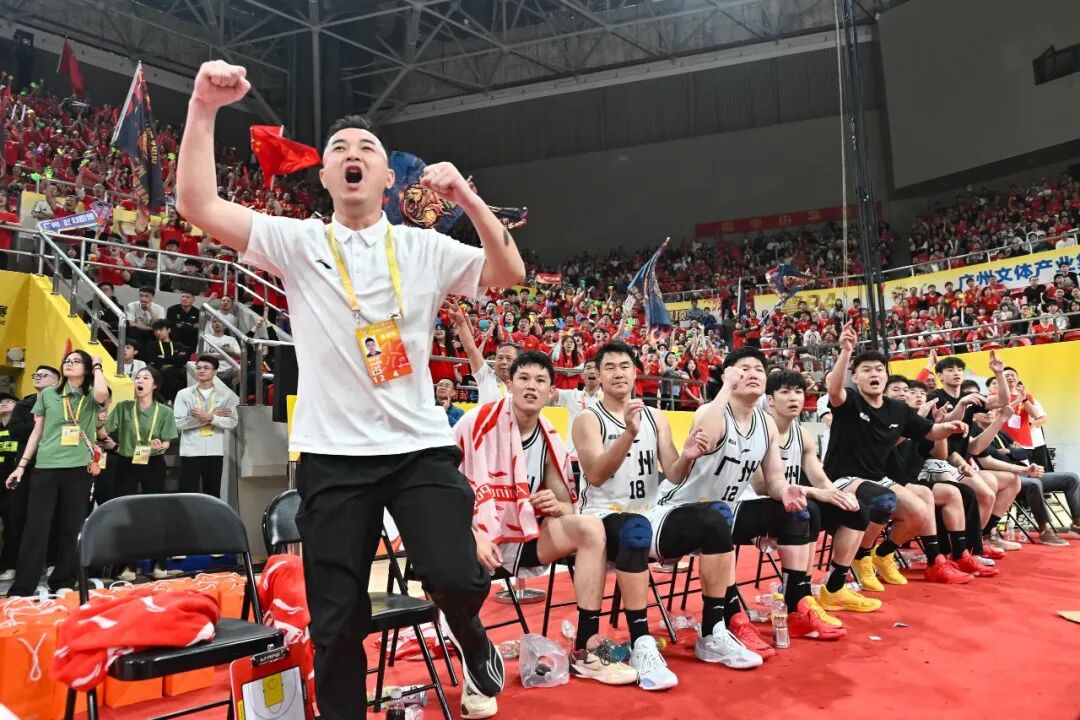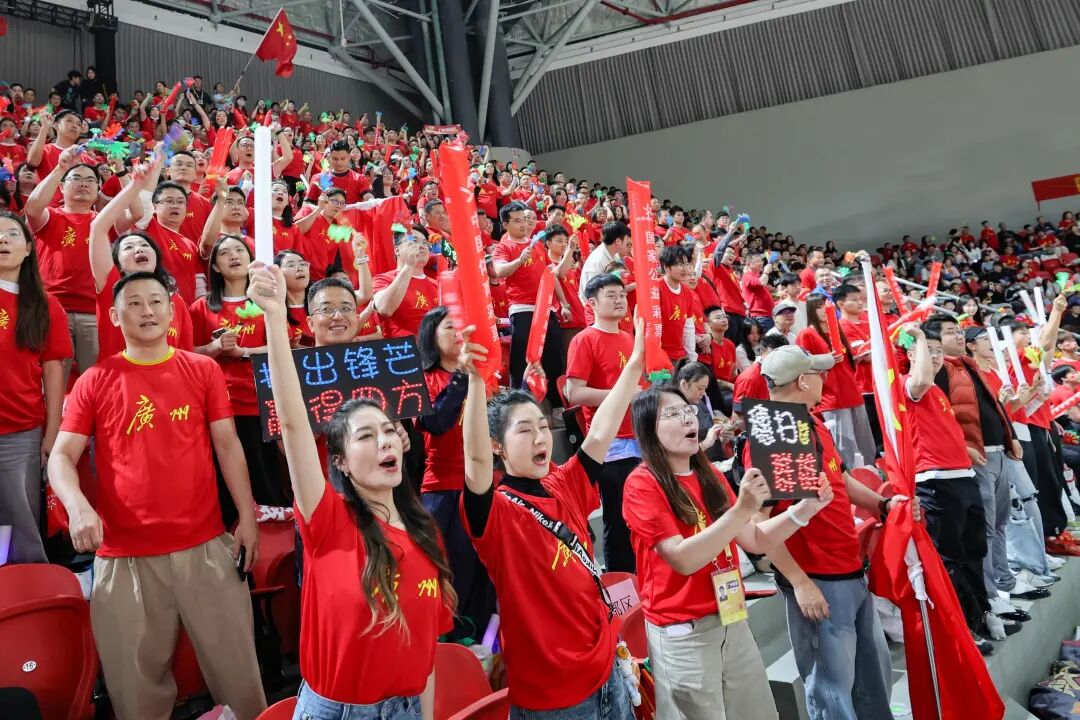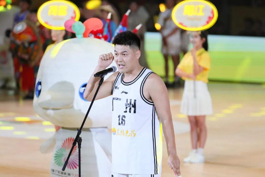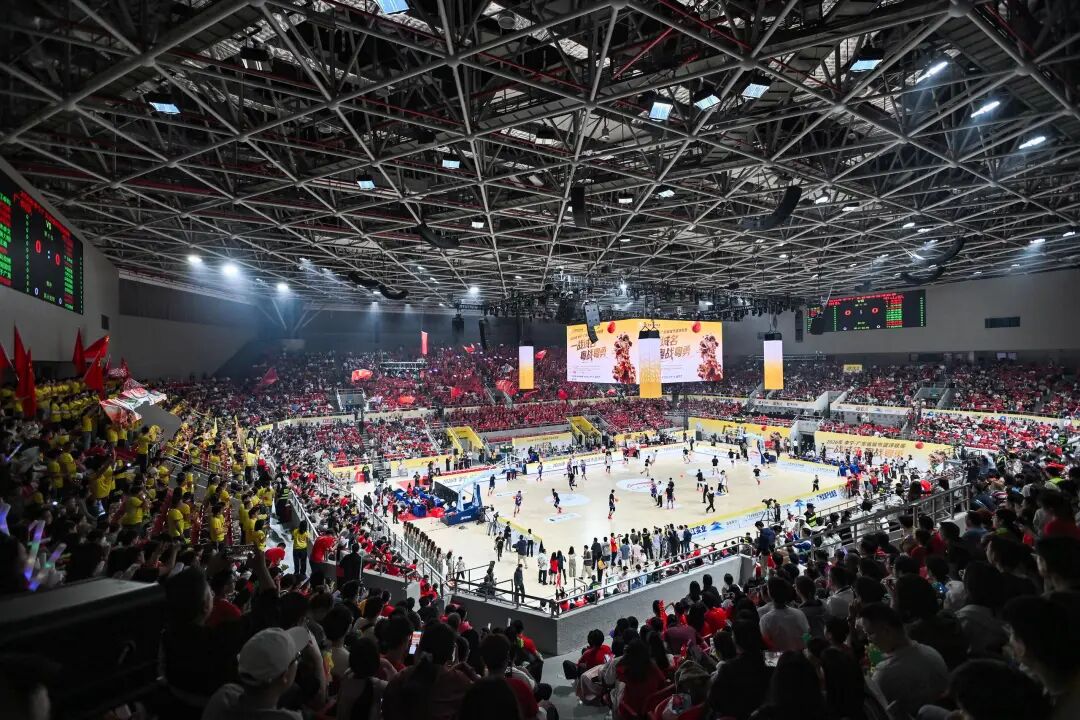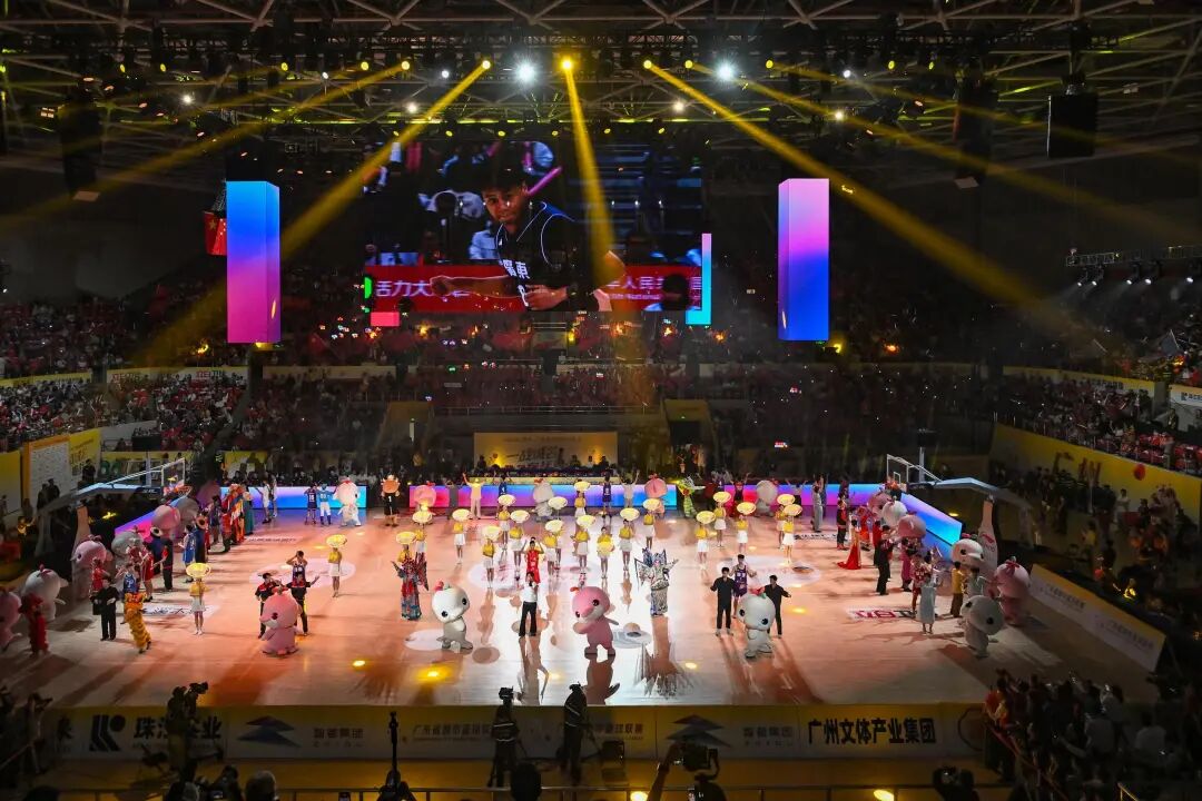 在短暂的场地转换后,两队球员在现场DJ介绍下依次登场亮相,整个出场环节参考了职业赛事规格,极具仪式感。随后全场6300名观众齐唱国歌,以高唱入云的豪情,尽情展现南粤儿女心向党、改革开放走在前的精气神。
